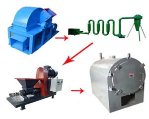 مطحنة الخشب، مجفف نشارة الخشب الهوائي، مكوك تشكيل الفحم، وفرن الكربنة.